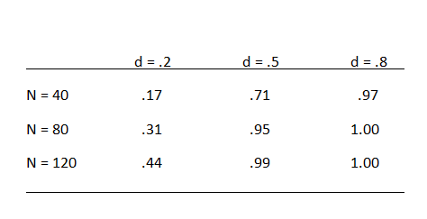 Power analysis with an effect size of d = .2 suggests that a serious empirical test of the will-power hypothesis requires a sample size of N = 300 (150 per cell) to have 80% power in a pre-post study of will-power.