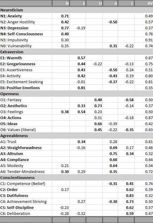 In a recent blog post, I presented I tried to fit a Big Five model to the 30 facets of the NEO-PI-R (Schimmack, 2019a). Table 1 shows the factor loadings of the 30 facets on the Big Five factors.