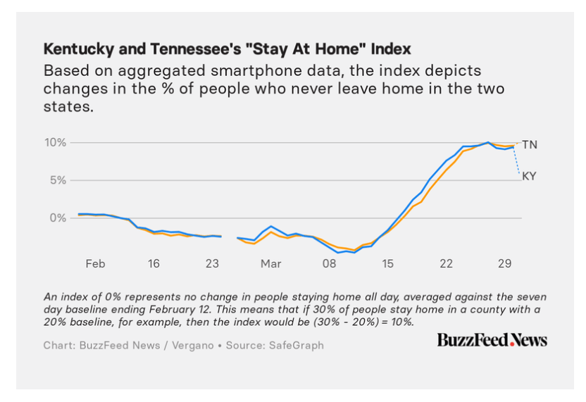 Smartphone data show that citizens in Kentucky and Tennessee responded similarly to the Covid-19 pandemic.