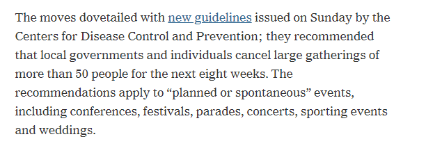The NYT article also implies that this decision was not made on the basis of an assessment of the local situation in NY, but rather in response to general guidelines by the Center for Disease Control for the United States in general.
