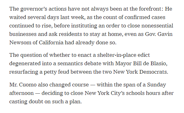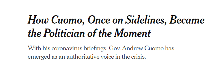 At this point, governor Cuomo had become a household name all over the United States (NYT.3.24).