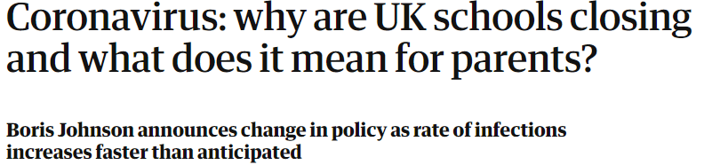 To examine the effectiveness of social-distancing measures, we need to consider timing. First, social distancing measures may be introduced in response to a pandemic. Later on, we might see that countries or US states that imposed more severe restrictions were able to slow down the spread of the virus more. However, now we encounter a new problem. Most countries and states responded to the declaration of Covid-19 as a pandemic by the WHO on March 11 with very similar policies (school closures). This makes it difficult to see the effects of social distancing measures because we have little variation in the predictor variable. We simply do not have a large group of countries with a Covid-19 epidemic that did nothing. This means, we lack a proper control group to see whether spread in these countries would be bigger than in countries with severe lock-downs. Even countries like the UK closed schools and bars in mid March.