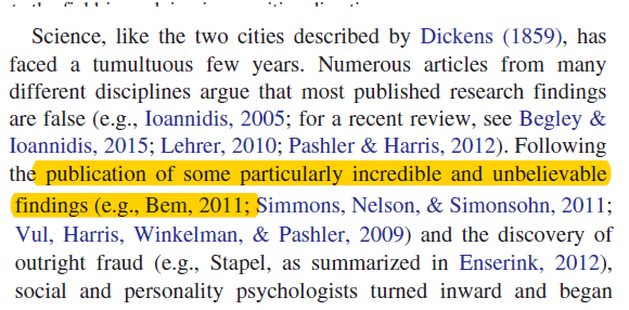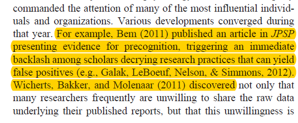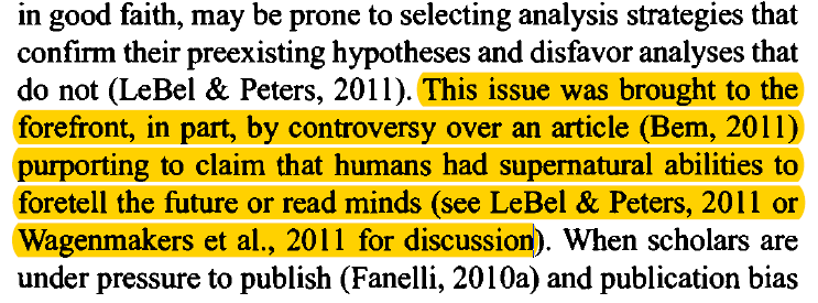 does not mention QRPs (John et al., 2012) or that Bem used QRPs (Francis, Schimmack, 2012)
