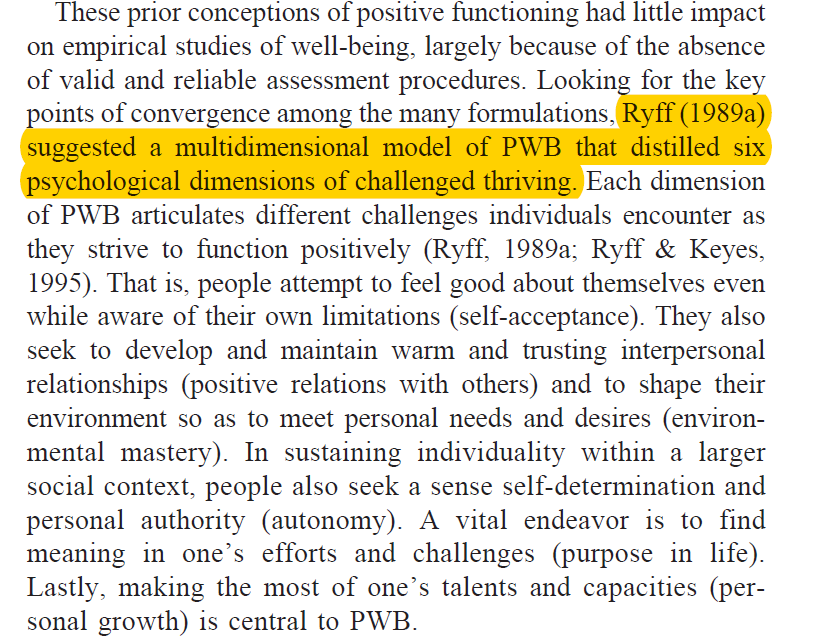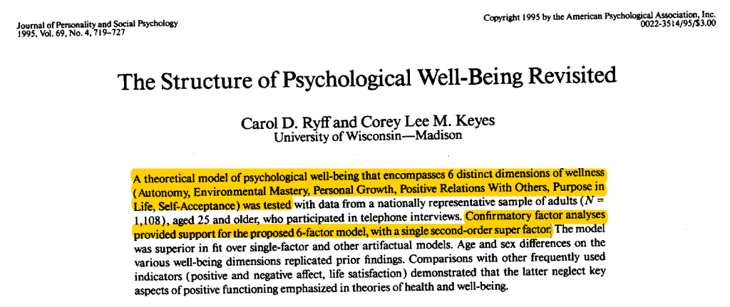 Most of these citations are reference to the use of Ryff’s measure of psychological well-being that uncritically accept Ryff’s assertion that her PWB measure is a valid measure of psychological well-being. The abstract implies that the authors provided empirical support for Ryff’s theory of psychological well-being.