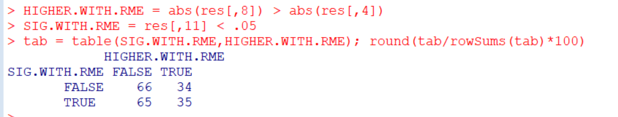 I believe that this outcome is based on an error in their simulation studies. The simulation does not clearly distinguish between sampling error and random measurement error. I have tried to make this point repeatedly on Gelman’s blog post, but this discussion and my previous blog post (that Gelman probably did not read) failed to resolve this controversy. However, it helped me to understand the source of the disagreement more clearly. I maintain that Gelman does not make a clear distinction between sampling error (i.e., even with perfectly reliable measures, results will vary from sample to sample and this variability is larger in small samples, STATS101) and random measurement error (i.e., two measures of the same constructs are not perfectly correlated with each other, NOT A TOPIC OF STATISTCS, which typically assumes perfect measures). Based on this insight, I wrote a new r-script that clearly distinguishes between sampling error and random measurement error. I ran the script 10,000 times. Here are the key results.