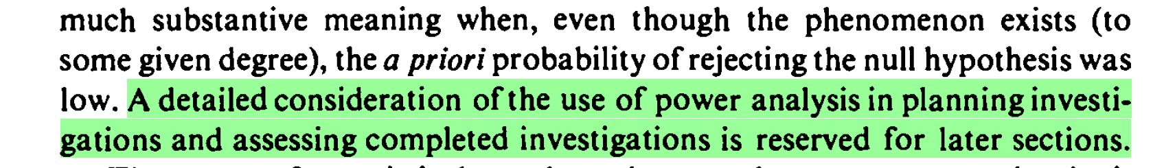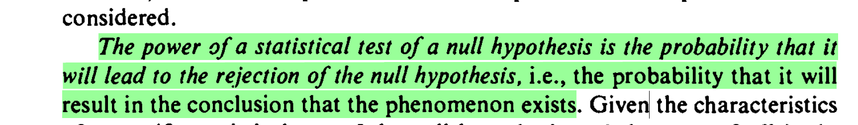 Erratum: In an earlier post, I misattributed the definition of power as a conditional probability to Jacob Cohen. This was a mistake. I checked Cohen (1988) and found – much to my surprise and chagrin – that I had trusted ChatGPT too much. My mistake. Cohen actually writes.
