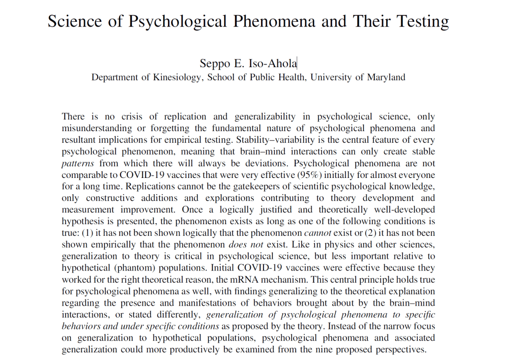 This article illustrates what can reasonably be described as willful ignorance: evidence that does not fit the preferred narrative is not engaged. The abstract’s claim that “there is no crisis of replication” is comparable, in terms of evidential standards, to assertions such as “climate change is a hoax”—claims that most scientists regard as unscientific because they dismiss a large and well-documented body of contrary evidence. Declaring the replication problem nonexistent, rather than specifying when, where, and why it does not apply, undermines psychology’s credibility and its aspiration to be taken seriously as a cumulative science.