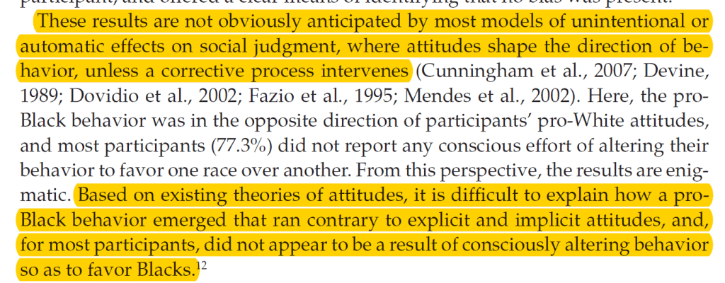 We hope that our direct demonstration of bias will finally end the practice of providing visitors of the Project Implicit website with misleading information about the validity of the race IAT and misleading information about individuals’ prejudice. There is simply no evidence that prejudice is hidden from honest self-reflection or that such hidden biases are revealed by the race IAT (Schimmack, 2021).