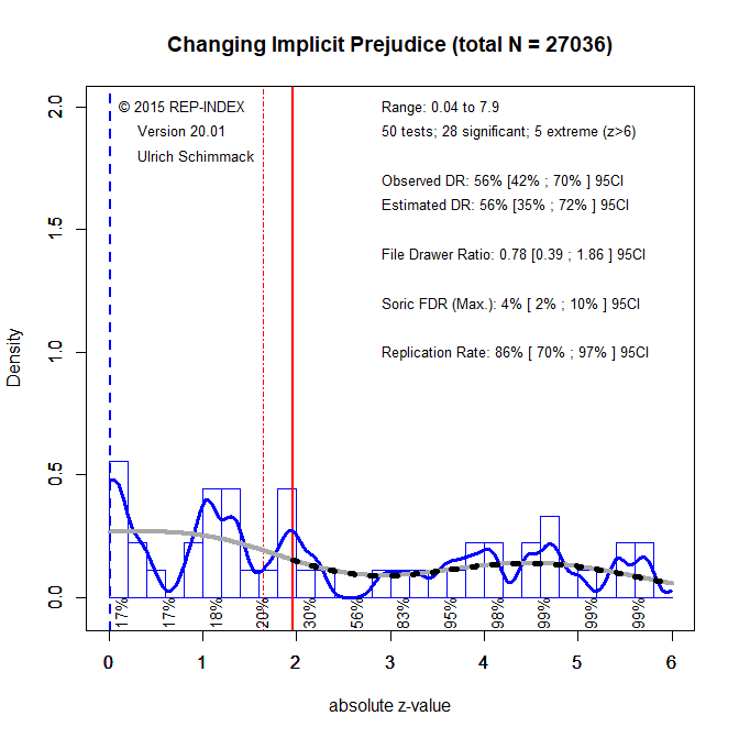 A third finding is that for White participants.54^2 = 29% of the variance in race IAT reflects attitudes towards African Americans (i.e., prejudice). This is a bit higher than previous estimates, which were in the 10% to 20% range (Schimmack, 2021). However, the lower limit of the 95%CI overlapped with this range of possible values, .43^2 = 18%.