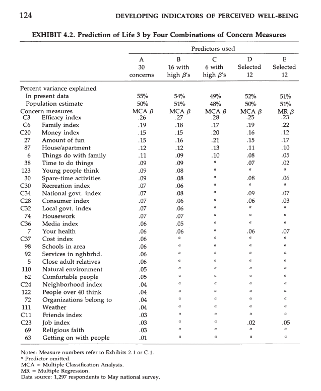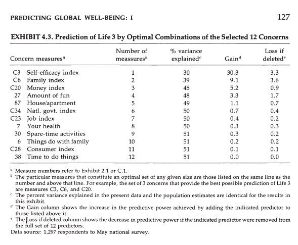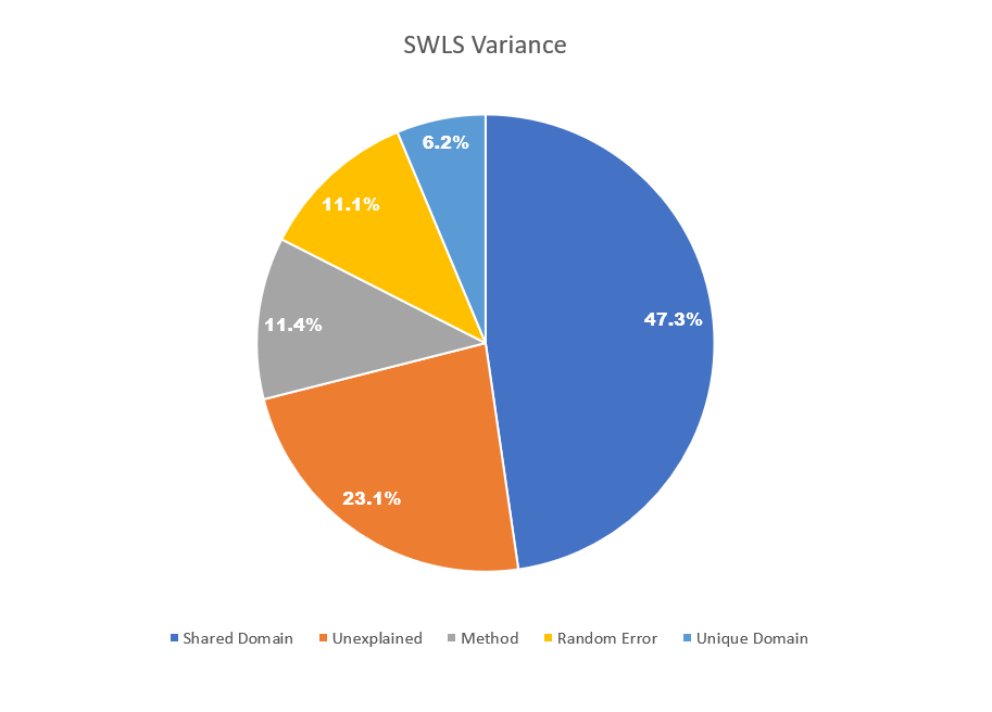 The survey also included Cantril’s ladder, which was included in the model, to identify method variance that is unique to the SWLS and not shared with other global well-being measures. Andrews & Withey found that about 10% of the variance is unique to a specific well-being scale.