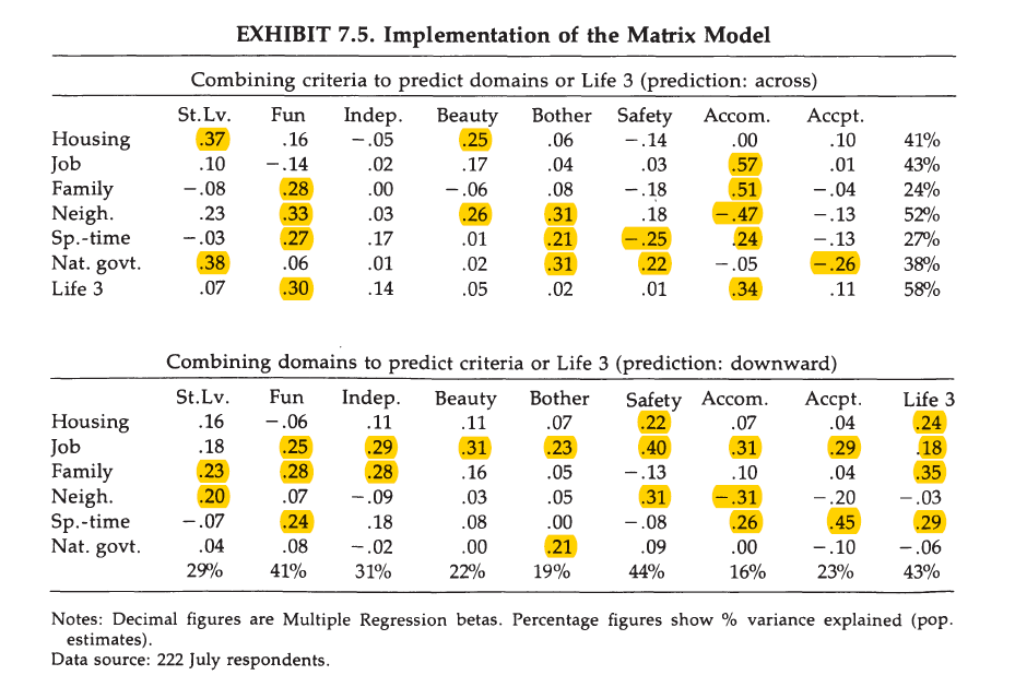 The reliance on subjective evaluation criteria also implies that individuals can give different weights to different life domains. For some people, family life may be the most important domain, for others it may be work (Andrews & Withey, 1976). The same point is made by Diener et al. (1985).