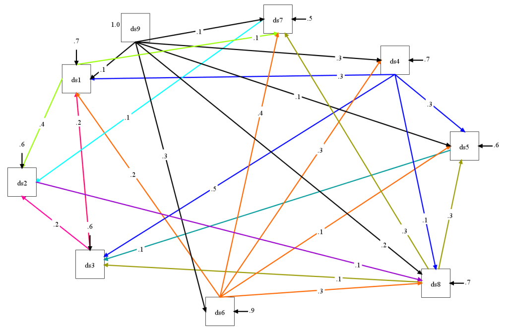 Romantic (D6) was assumed to have a causal influence on friends (D8) because a romantic partner can fulfill many of the needs that a friend can fulfill, but not vice versa.
